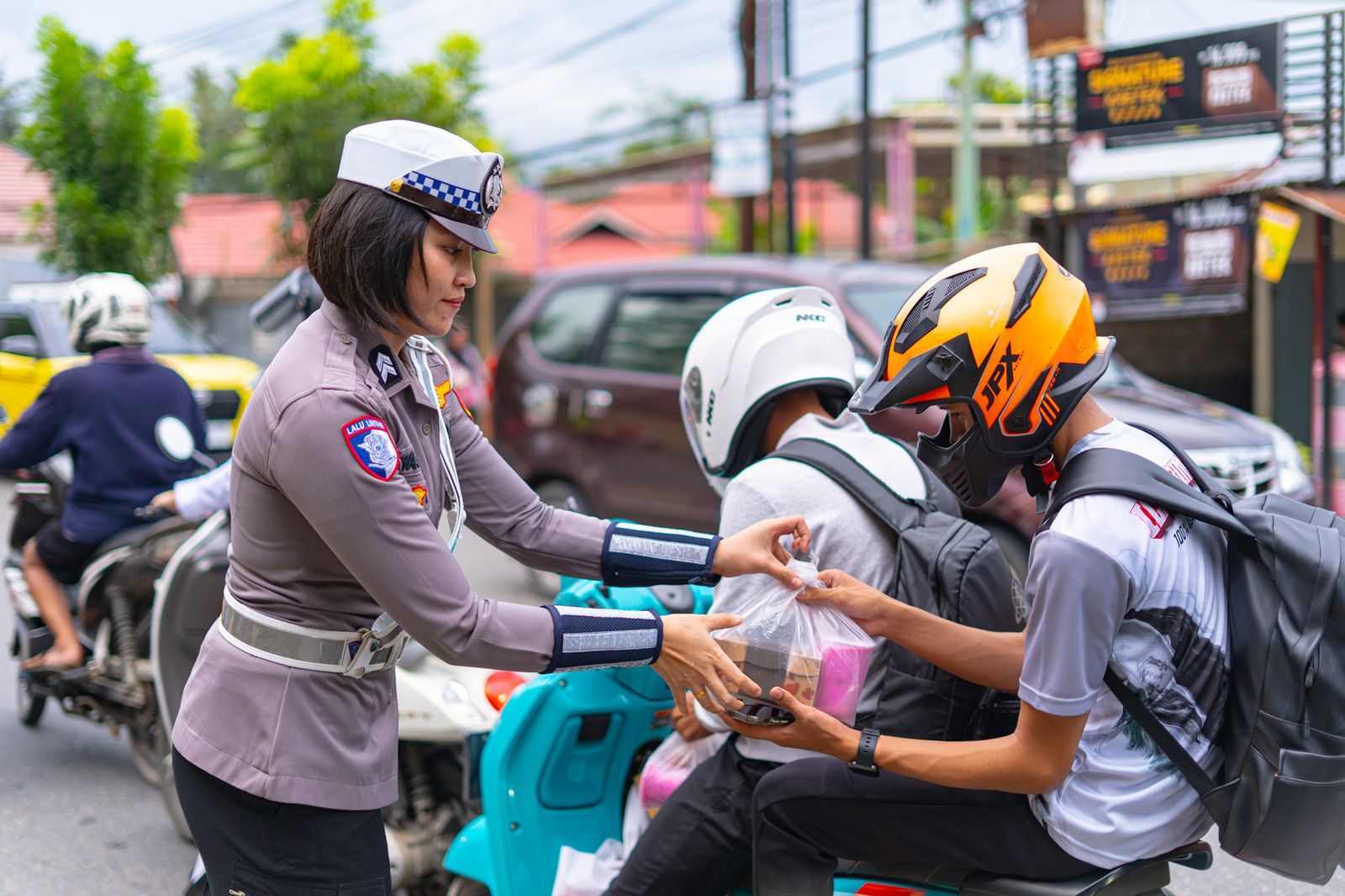 Disangka Razia, Ditlantas Polda Gorontalo Hanya Bagi-Bagi Takjil Terhadap Pengendara