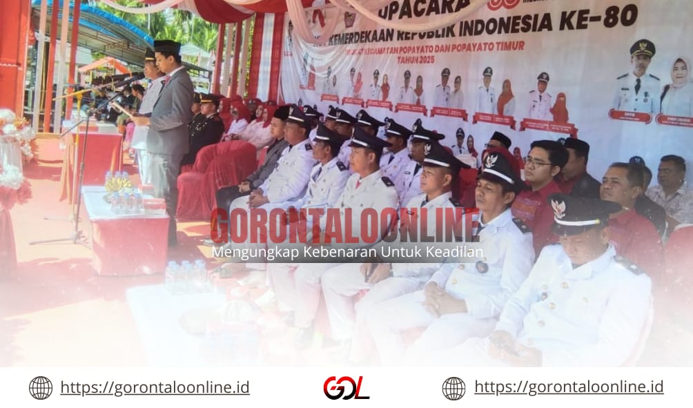 POHUWATO GOL – Upacara peringatan Hari Ulang Tahun (HUT) ke-80 Republik Indonesia di tingkat Kecamatan Popayato dan Popayato Timur berlangsung khidmat, Minggu (17/08/2025).