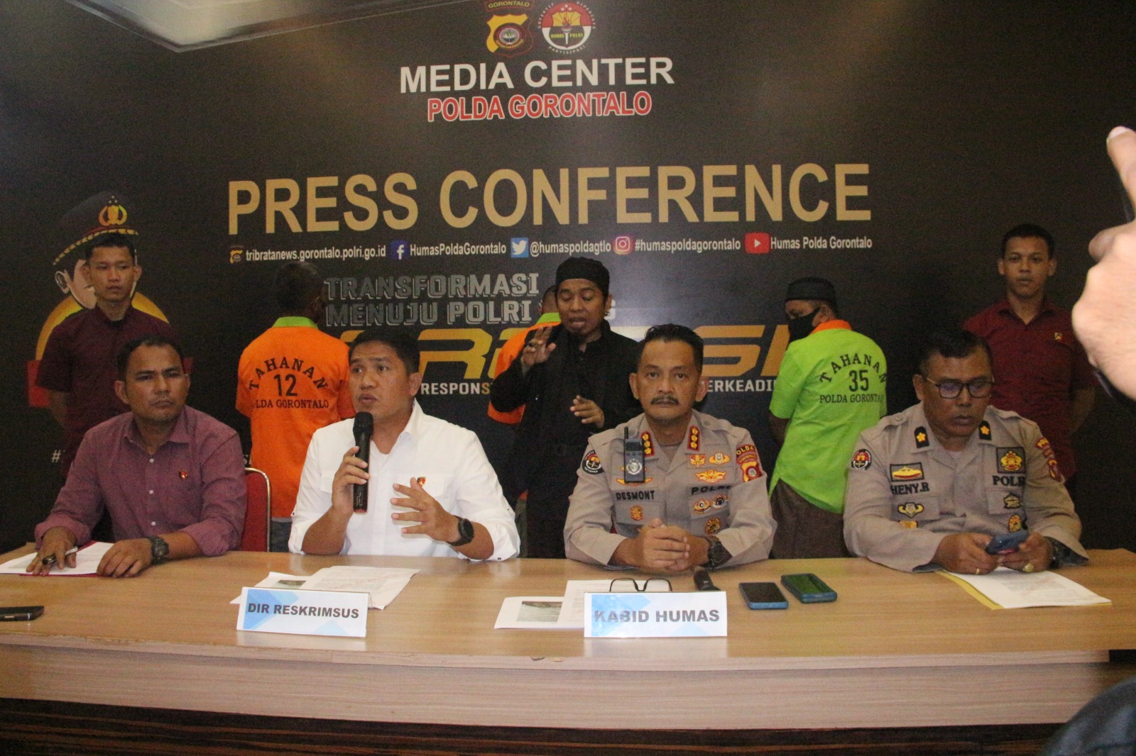 Kabid Humas Polda Gorontalo Kombes Pol. Desmont Harjendro A.P., SIK., M.T., membuka Press Release tersebut kemudian dilanjutkan Dir Reskrimsus Dr. Maruly Pardede, SH., SIK.,MH., mengungkapkan kronologi kasus yang terjadi pada hari Minggu 2 Februari 2025.
