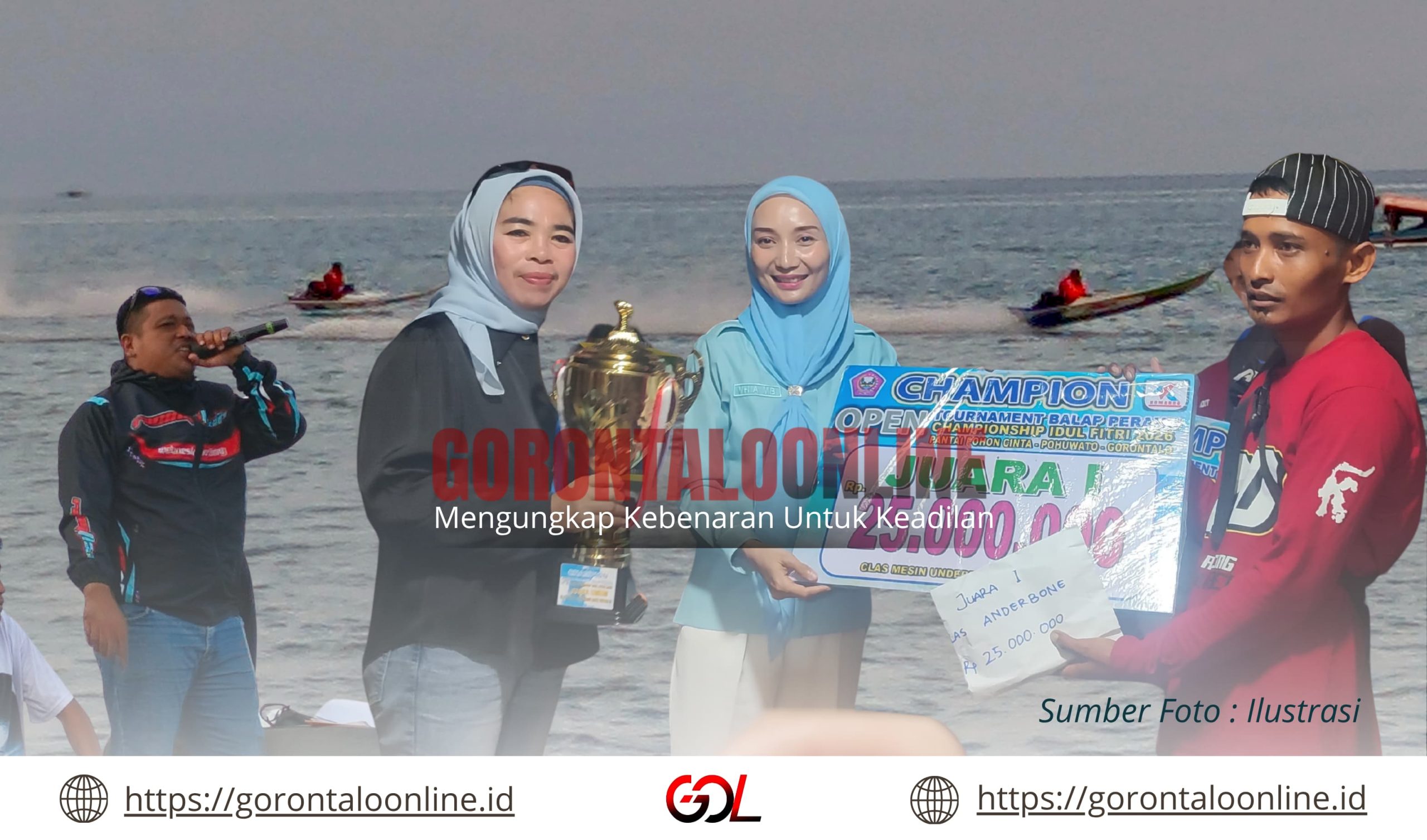 POHUWATO (GOL) — Kemeriahan terasa di kawasan Pantai Pohon Cinta, Kabupaten Pohuwato, saat partai final turnamen balap perahu bala-bala sukses digelar dan menjadi magnet bagi ribuan masyarakat, Minggu (29/03/2026).